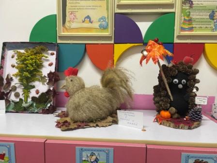 В детском саду традиционно проводится выставка поделок совместного творчества взрослых и детей из природных материалов "Осенняя фантазия".